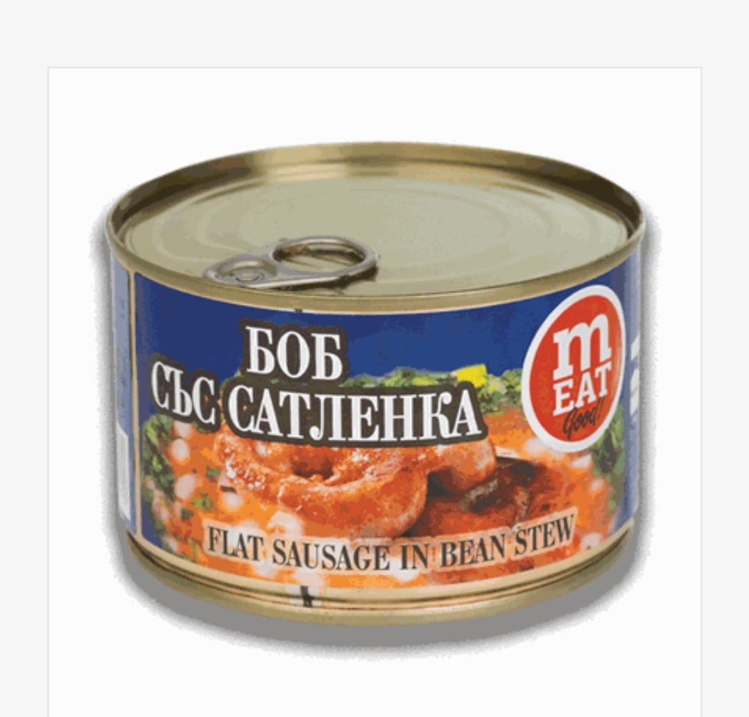 Състав: бял боб, сатленка (смес), доматен сос, олио, лук, подправки.