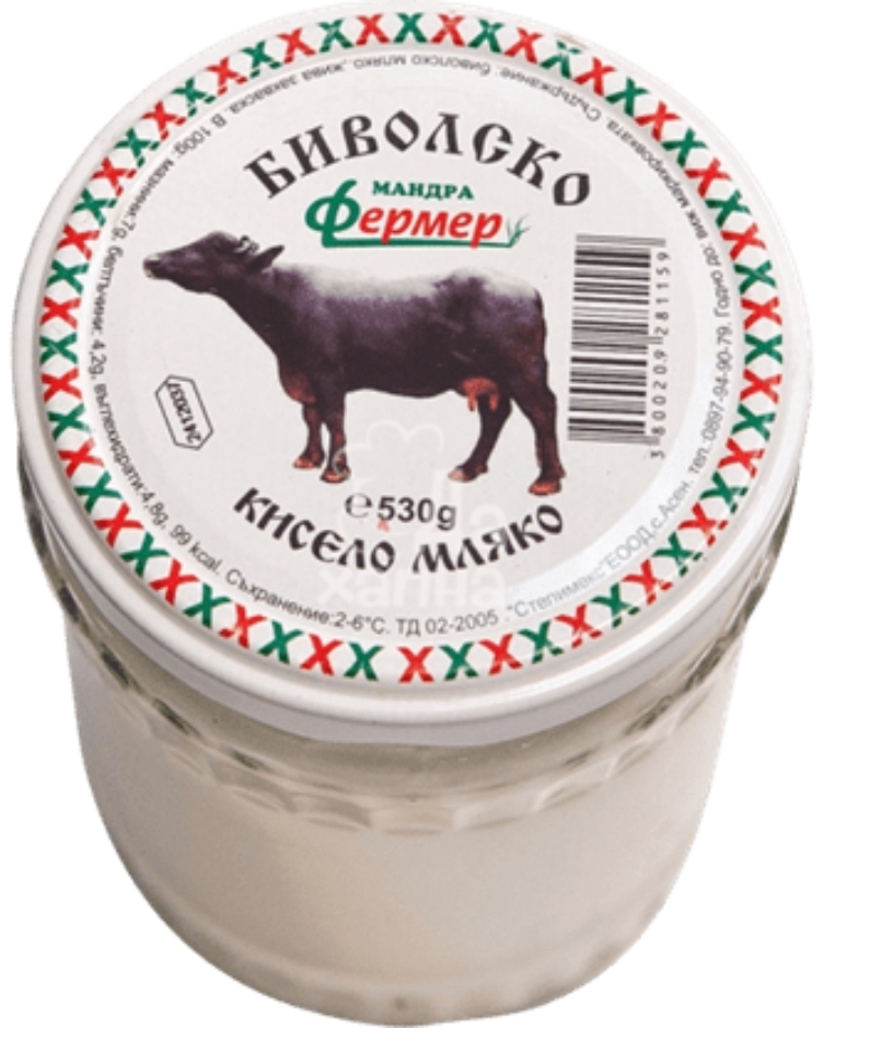 Състав: пастьоризирано биволско мляко, закваска (L. bulgaricus & S. thermophilus).